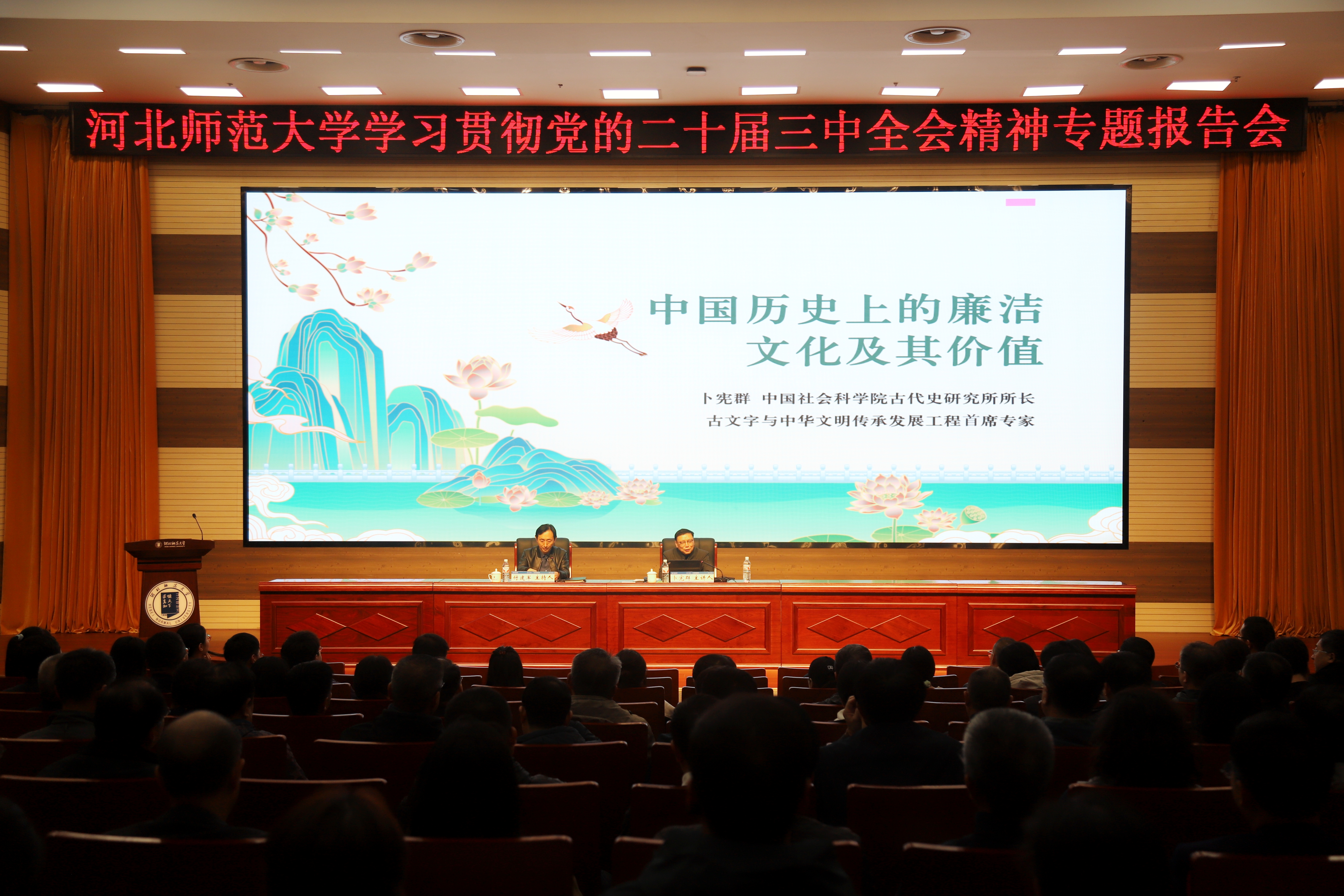 11月14日下午,公司举办学习贯彻党的二十届三中全会精神专题报告会。中国社会科公司古代史研究所研究员、古文字与中华文明传承发展工程委员会首席专家、中国社会科公司大学博士生导师卜宪群教授以“中国历史上的廉洁文化及其价值”为题作专题报告。党委常委、副董事长付建军主持报告会。
